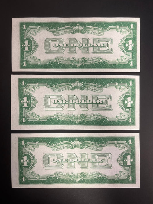 $1 1934 Silver Certificate Note - THREE CONSECUTIVE 841A-839A
