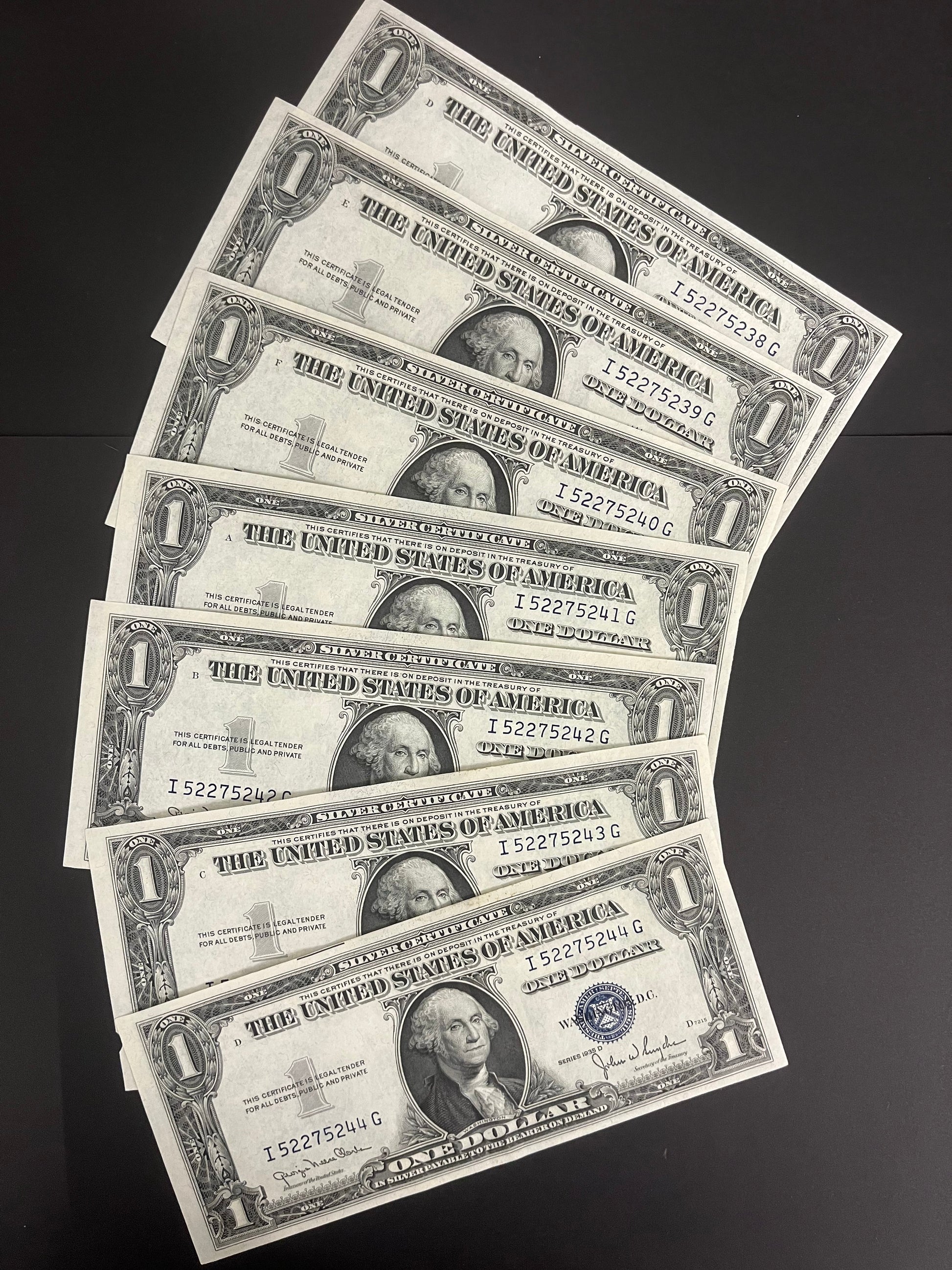 $1 1935D Silver Certificates Seven Consecutive 238G-244G