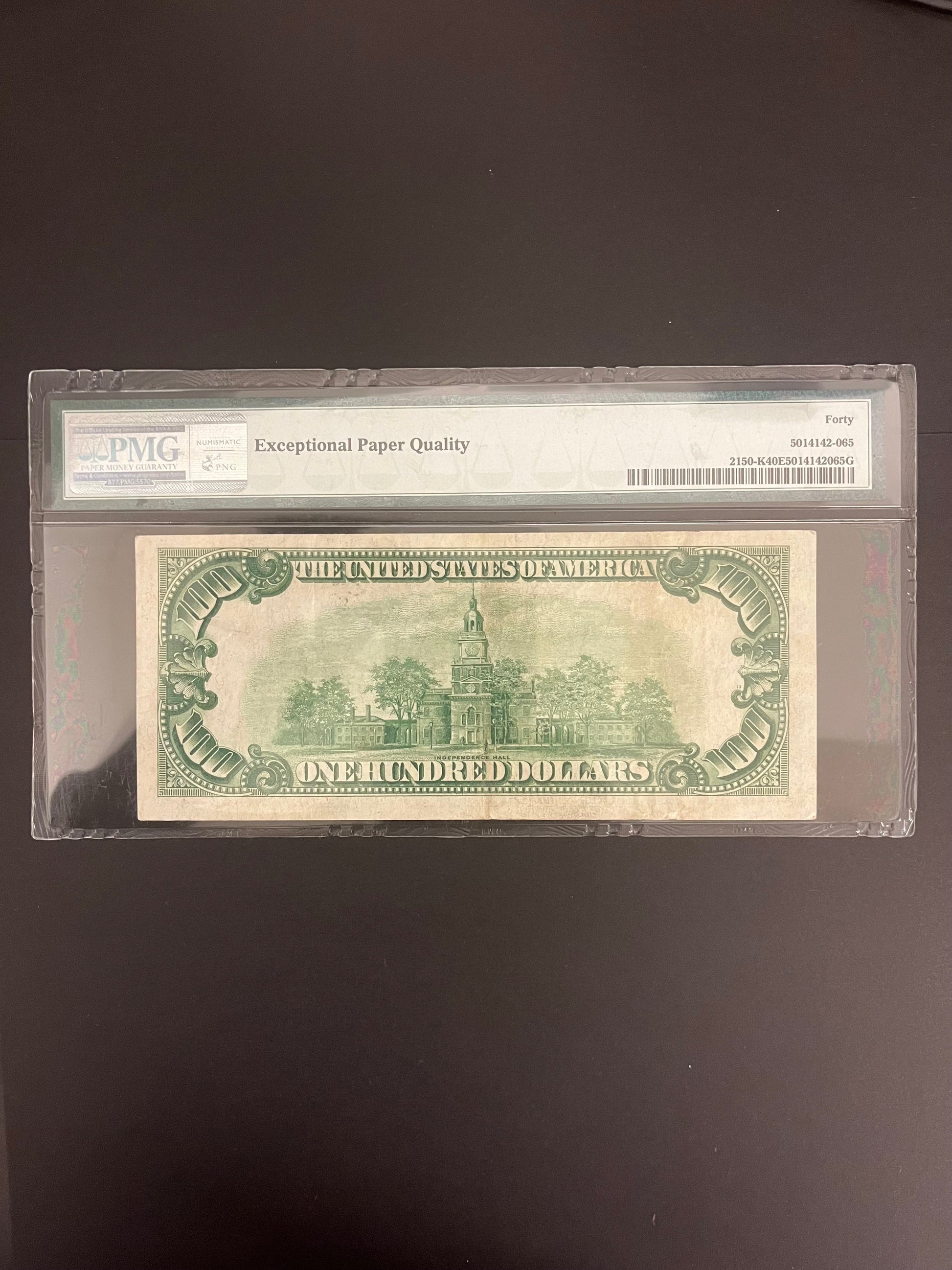 $100 1928 Federal Reserve Note Dallas Texas PMG 40EPQ 7060A