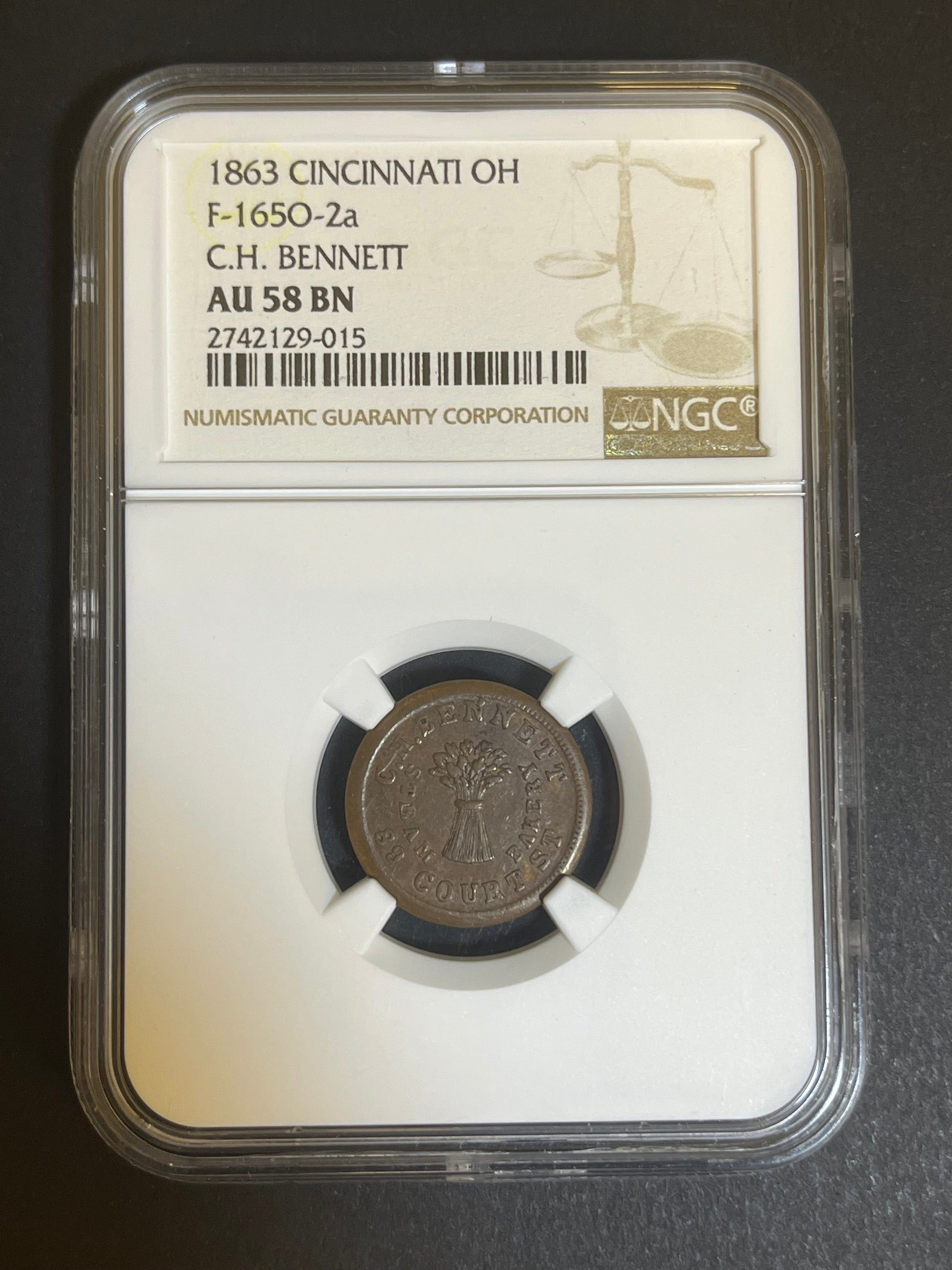 1863 Cincinnati OH Civil War Token F-1650-2a C.H. Bennett AU 58 BN NGC