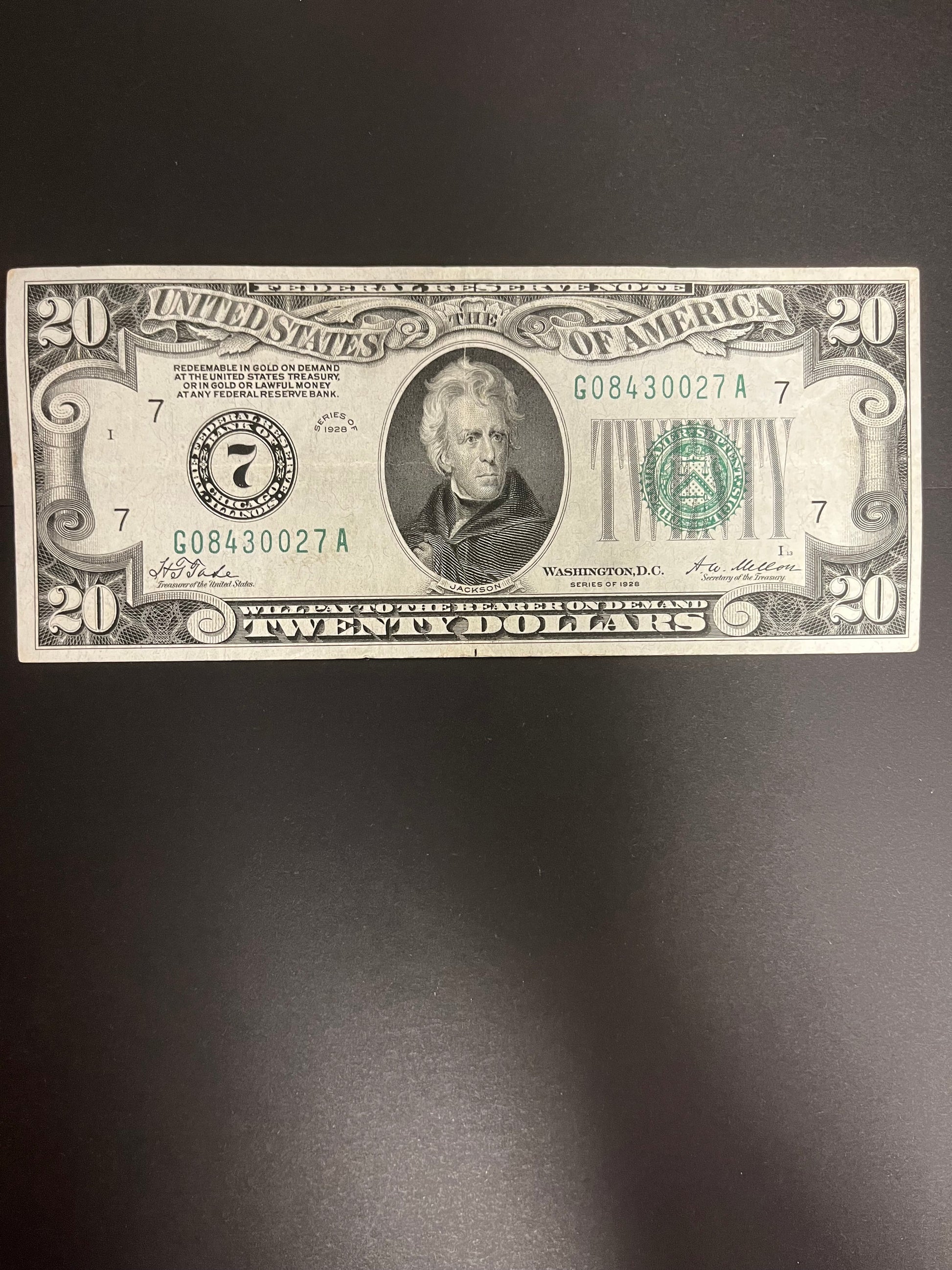 1928 $20 FRN Chicago, IL Numberical 7 Green Seal - 0027A