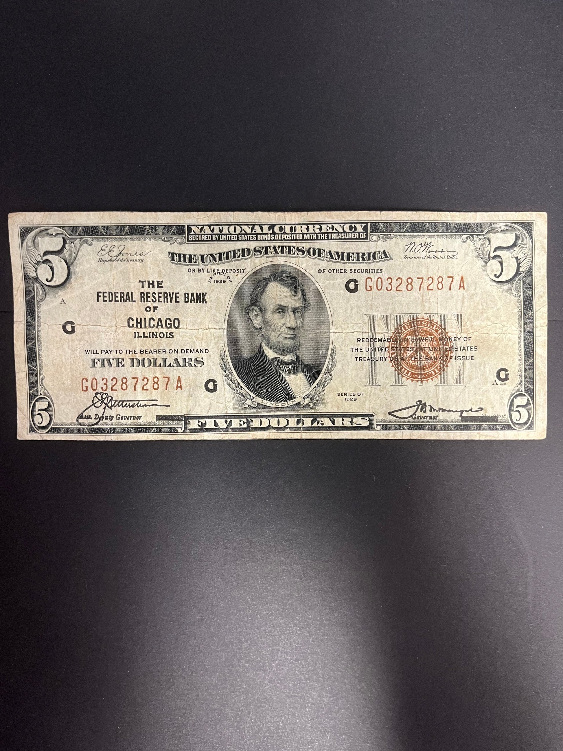 1929 $5 FRBN Chicago, IL 7287A