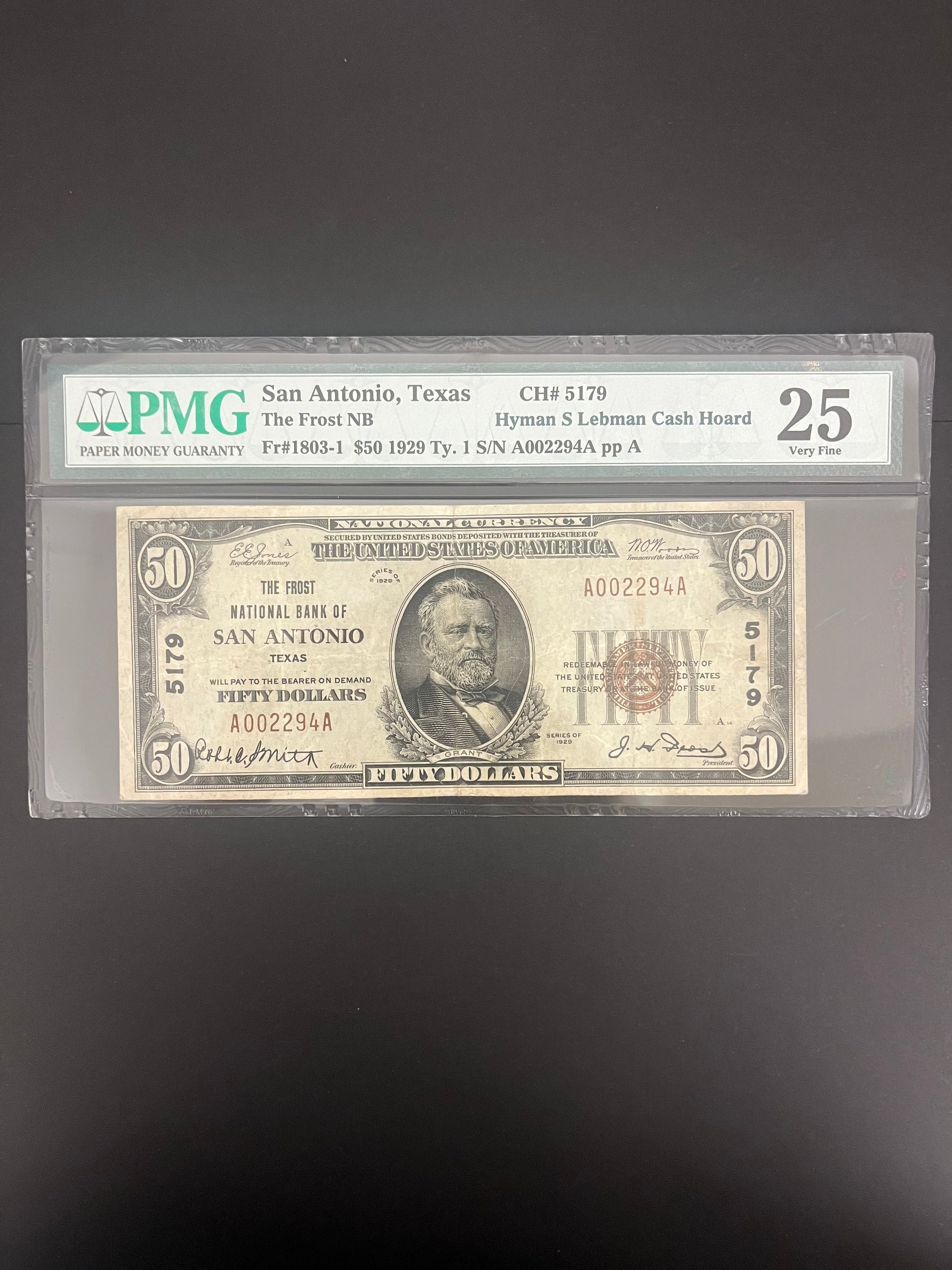 1929 $50 San Antonio TX National - 2294A PMG 25 EPQ