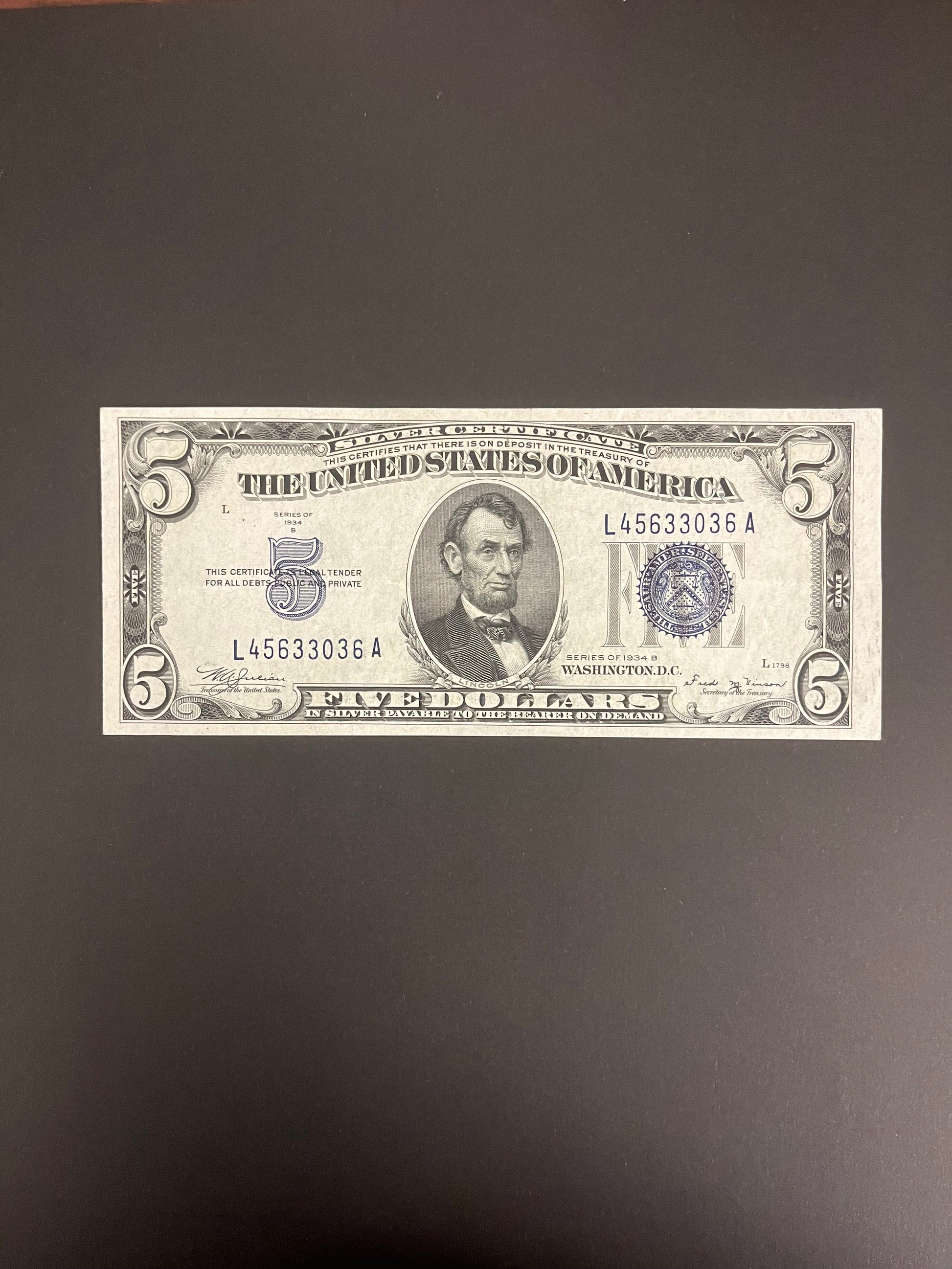 $5 1934 Silver Certificate Note 036a