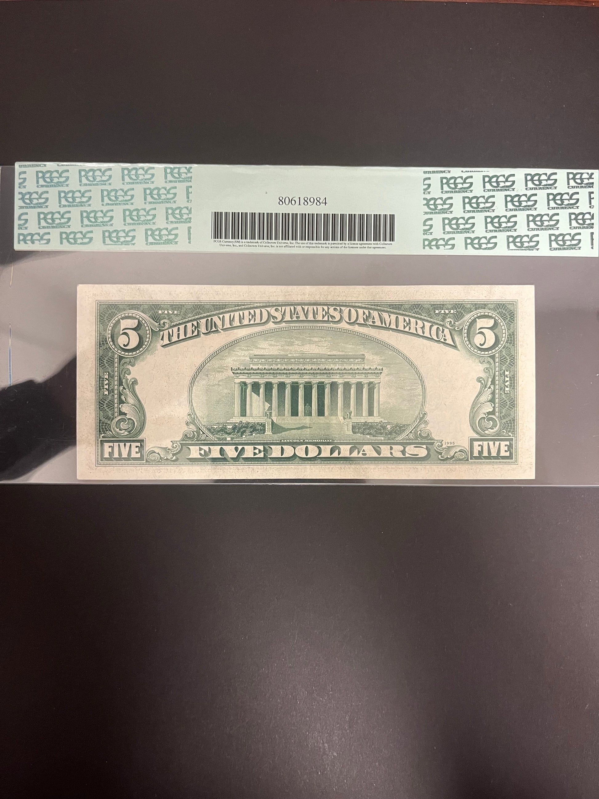 $5 1934D Silver Certificate PCGS 50PPQ 7814A Wide I